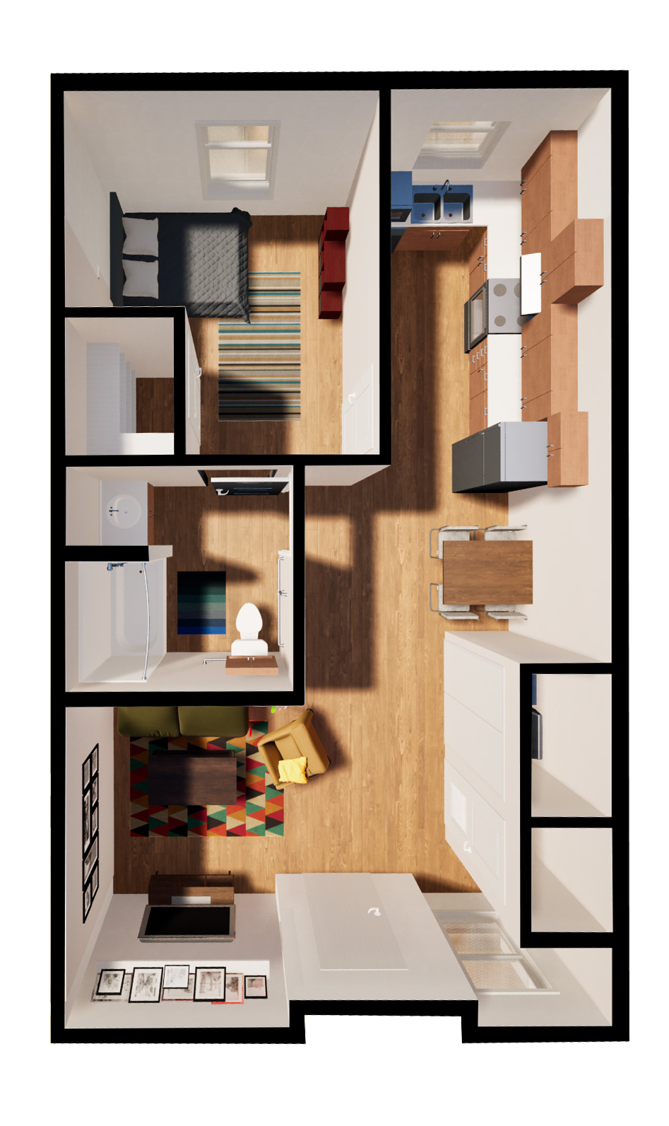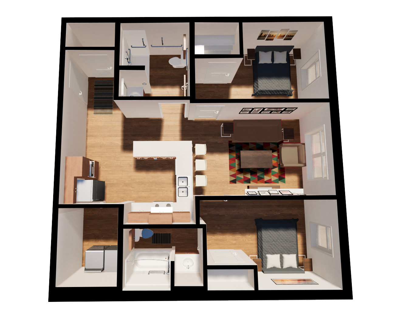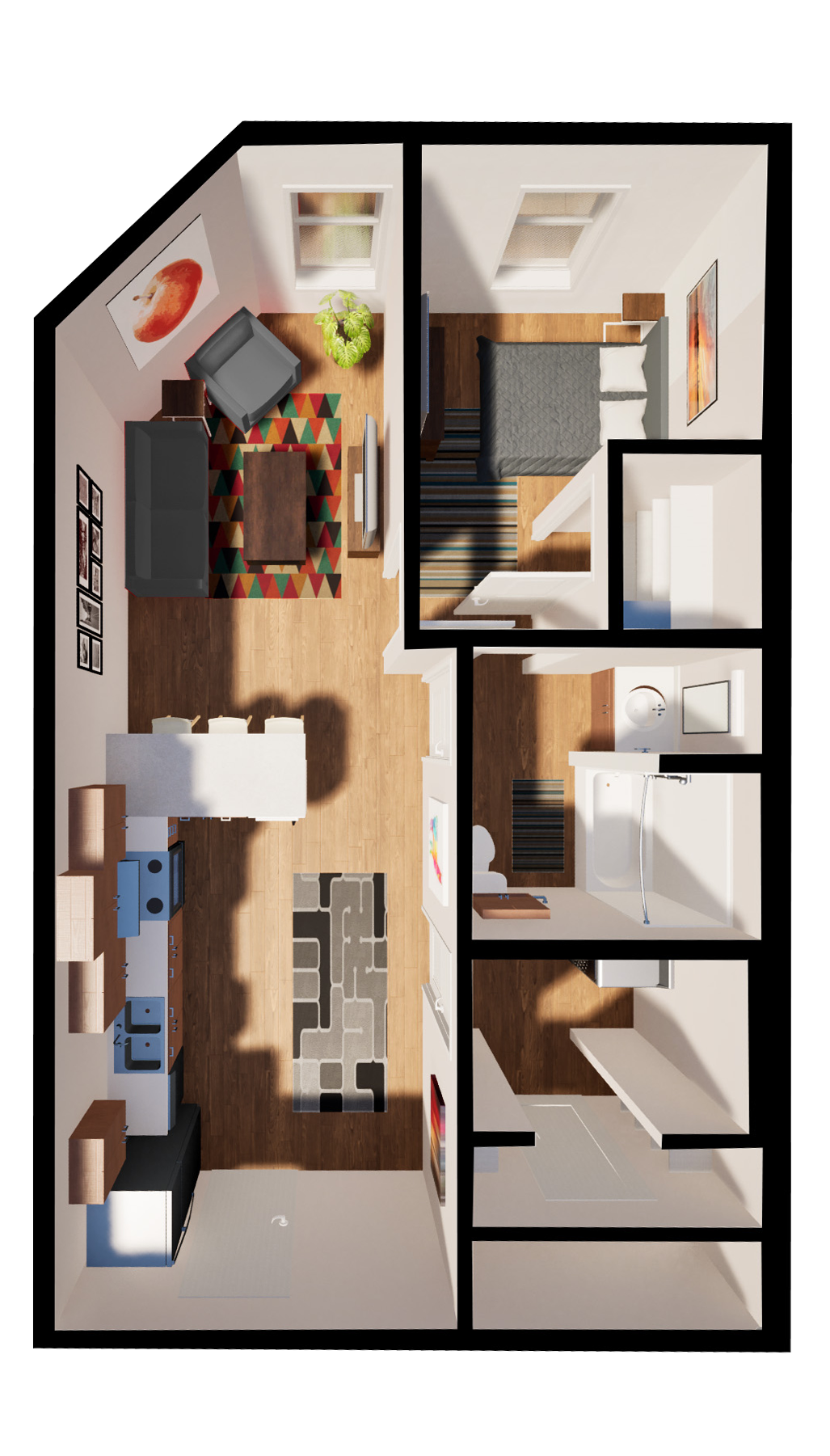Our 1- and 2-bedroom apartments are designed as a welcoming canvas for the way you live. Bright, open living and kitchen areas flow together to create a central space for cooking, dining, and relaxing—perfect for gathering with friends or enjoying the calm of your own company.