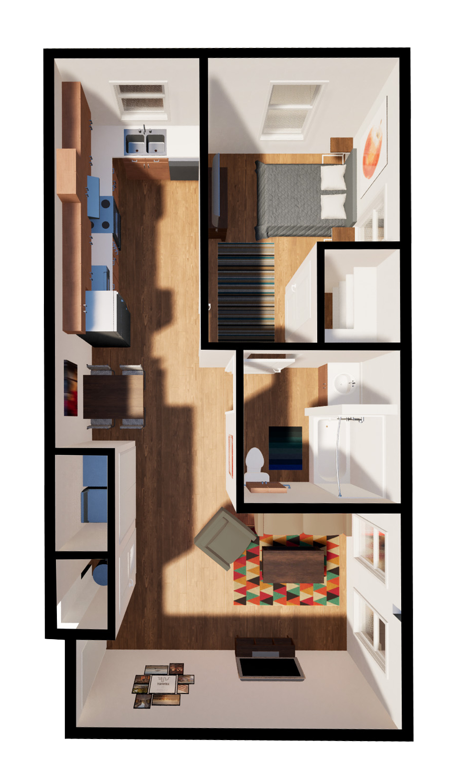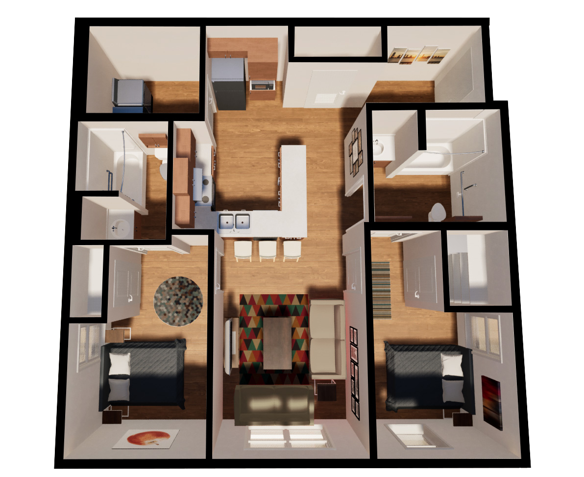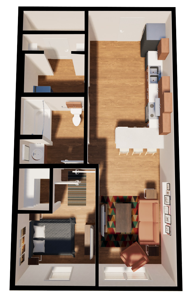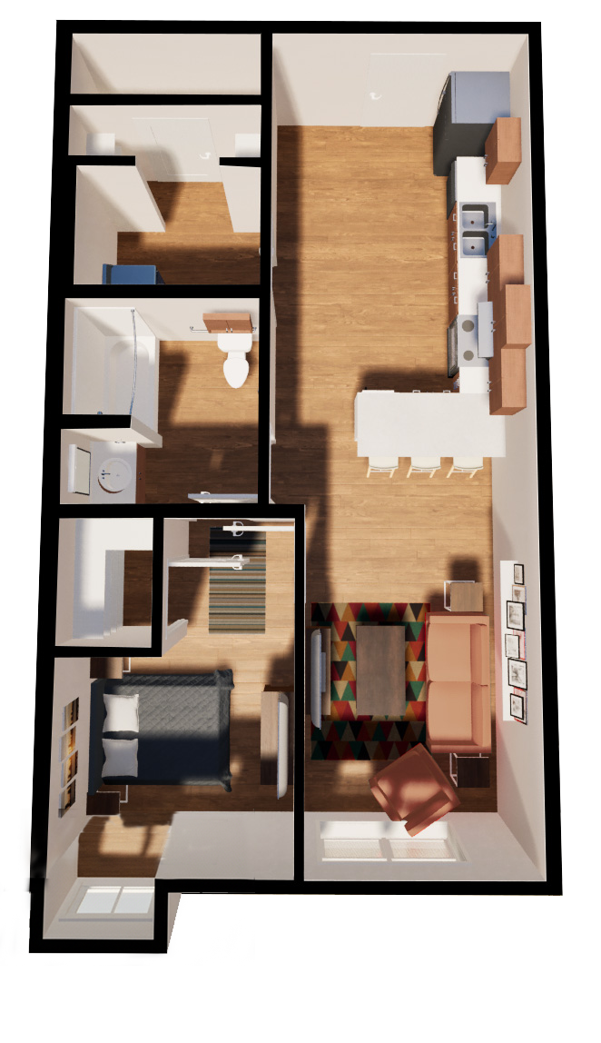 Our 1- and 2-bedroom apartments are designed as a welcoming canvas for the way you live. Bright, open living and kitchen areas flow together to create a central space for cooking, dining, and relaxing—perfect for gathering with friends or enjoying the calm of your own company.